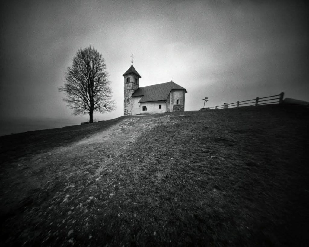 For now, I’m captivated by small ponds, quiet lakes, and solitary chapels nestled in the landscape, places where nature and silence create something sacred. I don’t chase postcard perfection, I wait for authentic moments that carry emotion. In my pinhole photography, I work with black and white film, as it aligns best with the moody, atmospheric quality I seek in my images.