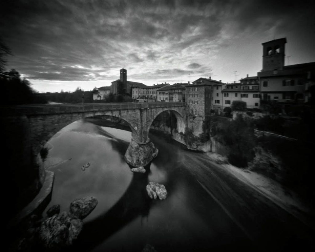 I was first introduced to pinhole photography about 13 years ago by Marko Vogrič, now the president of our photography club Skupina 75. Marko is working with pinhole photography for over 20 years and is well known in Italy for his series “Miška po svetu” (“Little Mouse Around the World”). For years, he encouraged us to build pinhole cameras from cardboard and wooden boxes or modified old cameras and photographing on photographic paper or film during annual Pinhole Day workshops.